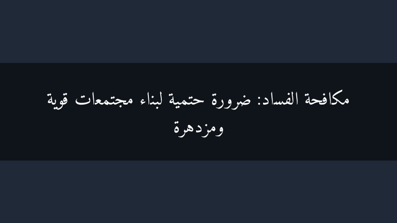 الفساد آفة تهدد استقرار المجتمعات وتقدمها، فهو يقوض أسس الحكم الرشيد، ويعيق التنمية الاقتصادية والاجتماعية، ويؤدي إلى تآكل الثقة بين المواطنين ومؤسسات الدولة. مكافحة الفساد ليست مجرد خيار، بل هي ضرورة حتمية لبناء مجتمعات قوية ومزدهرة تنعم بالعدالة والمساواة وتكافؤ الفرص.