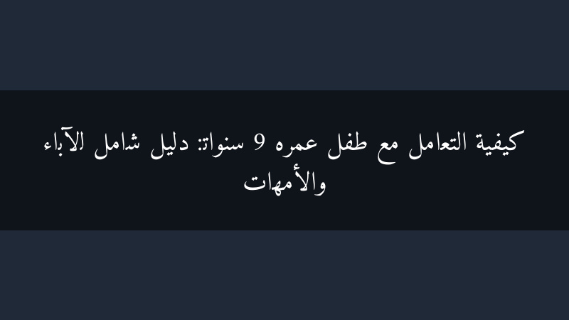 التعامل مع طفل عمره 9 سنوات يتطلب صبرًا وتفهمًا وحبًا. من خلال فهم التطورات التي يمر بها طفلك وتطبيق النصائح المذكورة أعلاه، يمكنك مساعدته على النمو والتطور ليصبح شخصًا بالغًا سعيدًا وناجحًا.