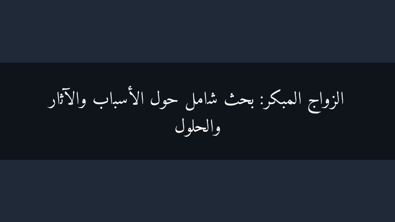 الزواج المبكر هو انتهاك لحقوق الإنسان، ويجب مكافحته بكل الوسائل الممكنة. من خلال تضافر الجهود المحلية والدولية، يمكننا حماية الفتيات وتمكينهن من تحقيق كامل إمكاناتهن والمساهمة في بناء مجتمعات أكثر عدلاً وازدهارًا.
