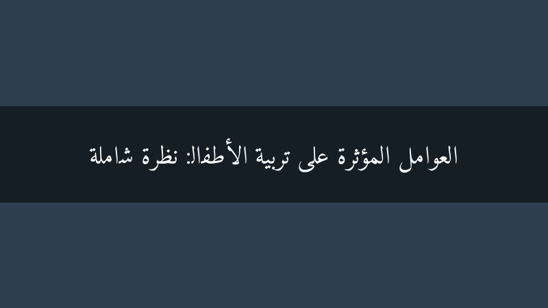 تربية الأطفال هي عملية معقدة تتأثر بالعديد من العوامل المختلفة. من خلال فهم هذه العوامل، يمكن للوالدين والمجتمع العمل معًا لخلق بيئة داعمة ومحفزة تساعد الأطفال على النمو ليصبحوا بالغين أصحاء وسعداء ومثمرين.