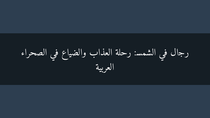 تعتبر رواية "رجال في الشمس" للكاتب الفلسطيني غسان كنفاني، تحفة أدبية خالدة، تجسد ببراعة مأساة الشعب الفلسطيني وضياعه في البحث عن لقمة العيش والأمل في مستقبل أفضل. نشرت الرواية عام 1963، وسرعان ما أصبحت رمزًا للأدب الفلسطيني المقاوم، حيث تعكس بصدق معاناة اللاجئين الفلسطينيين وتطلعاتهم.