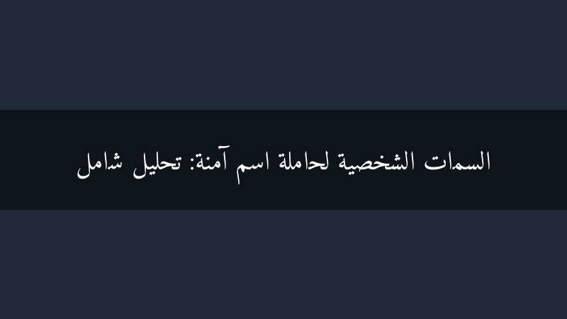 الأمان والثقة: الاسم نفسه يوحي بالأمان، لذلك غالبًا ما تتمتع حاملة اسم آمنة بشخصية تبعث الثقة في الآخرين. قد تكون كتومة وتحافظ على أسرار من حولها، مما يجعلها موضع ثقة واعتزاز.