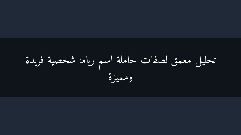 الطموح والإصرار من الصفات التي تساعد ريام على تحقيق النجاح في حياتها. لديها رؤية واضحة لأهدافها، وتعمل بجد ومثابرة لتحقيقها. لا تستسلم بسهولة أمام العقبات، بل تعتبرها فرصاً للتعلم والنمو. تتميز أيضاً بقدرتها على التنظيم والتخطيط، مما يساعدها على إدارة وقتها ومواردها بكفاءة.
