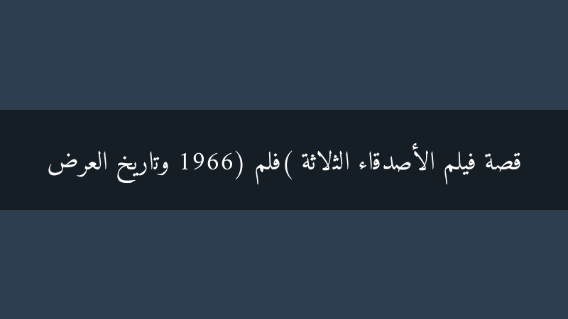 فيلم الأصدقاء الثلاثة، الذي عُرض عام 1966، هو فيلم مصري اجتماعي درامي تدور أحداثه حول ثلاثة أصدقاء تربطهم علاقة قوية منذ الطفولة. يواجه هؤلاء الأصدقاء تحديات مختلفة في حياتهم، تختبر قوة صداقتهم وتكشف عن جوانب خفية في شخصياتهم.